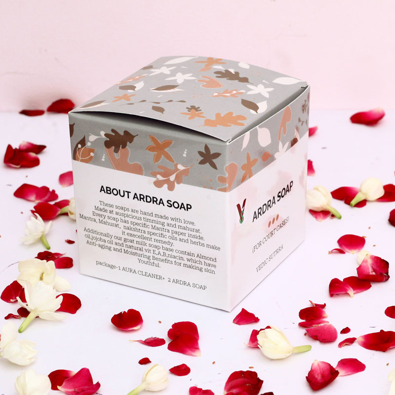 ARDRA SOAP combo is aimed at elevating the negative effect associated with ARDRA nakshatra. ARDRA soap is designed to channel the disciplined energy of Rahu. Herbs and essential oils @ mantra/yantra help in reducing the negative effect of Rahu (court case).