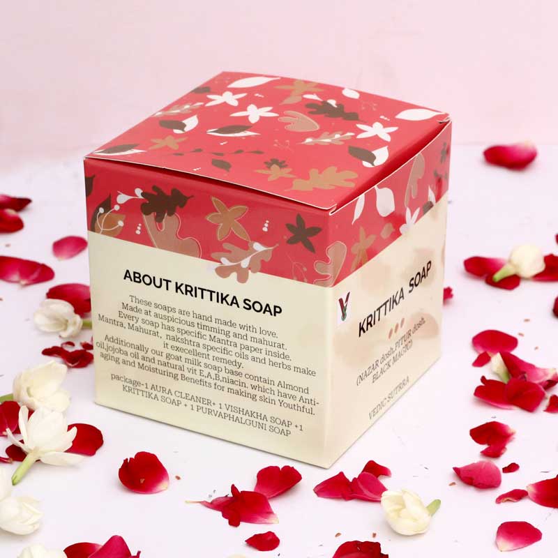 KRITTIKA NAKSHATRA soap combo is organic, handcrafted with positive intention, affirmations, and energy by Dr. Anu Jaiswal, Ayurveda doctor @ Vedic Sutrra Ayurveda Center, Noida, India.