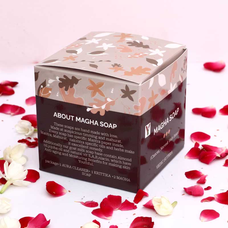 MAGHA NAKSHATRA soap combo is organic, handcrafted with positive intention, affirmations, and energy by Dr. Anu Jaiswal, Ayurveda doctor @ Vedic Sutrra Ayurveda Centre, Noida, India.